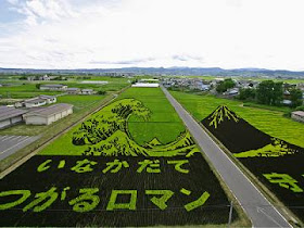 Rice field foto in Japan.Kesenian petani di Jepun dapat melukis satu lukisan diatas sawah mereka.Bila agaknya petani di Malaysia dapat melakukan lukisan seperti petani di Jepun?